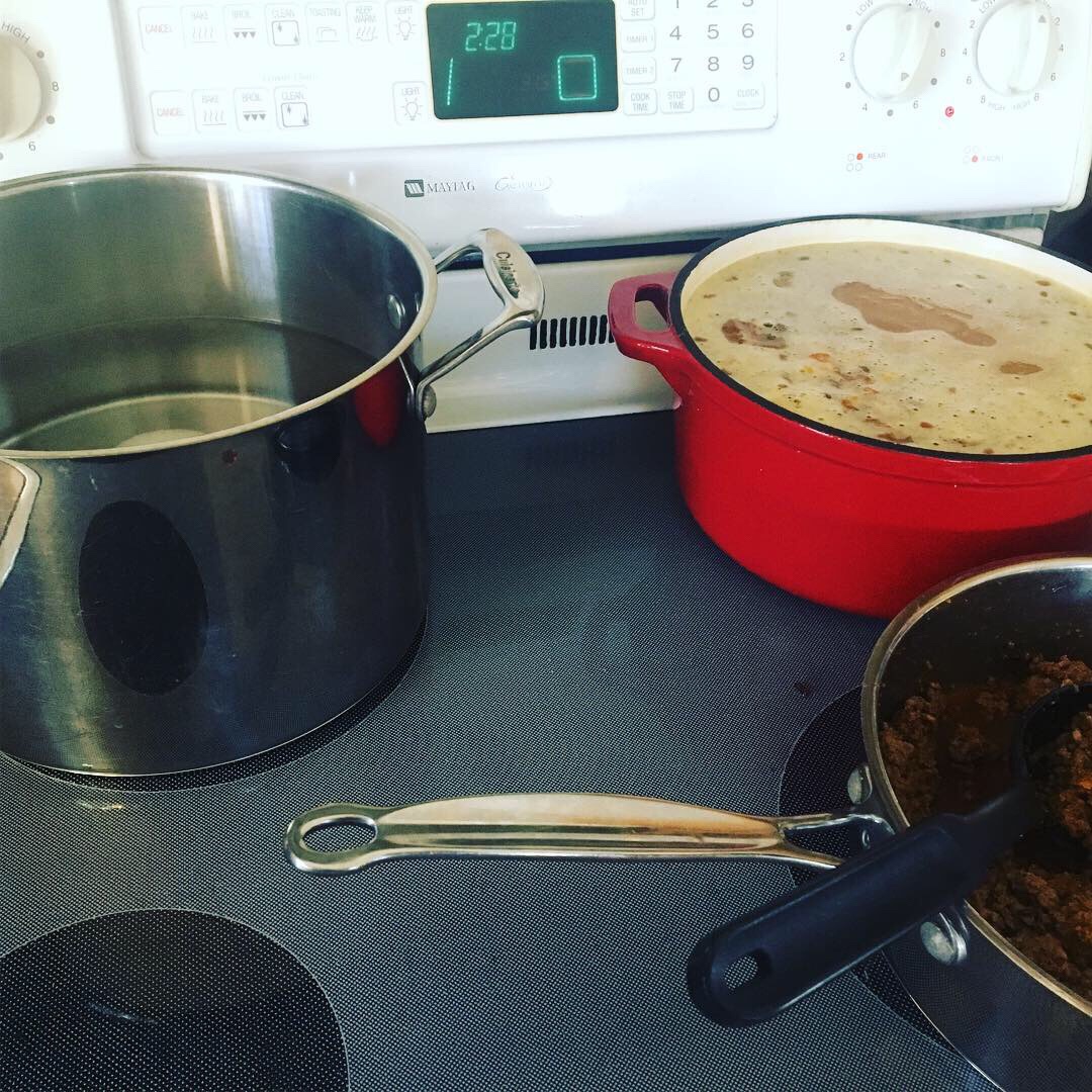 Then I make at least 2 main dishes and a big pot of soup/chili in my Dutch Oven Pot. This week I made eggplant lasagna, meatloaf and meatballs, chicken tortilla soup and I browned 2 pounds of ground beef that I seasoned with taco seasoning. This makes for a busy few hours in the kitchen, but saves so much time during the week. What are your make ahead meal favorites? Want some of mine? Check back soon and I will post my plans.